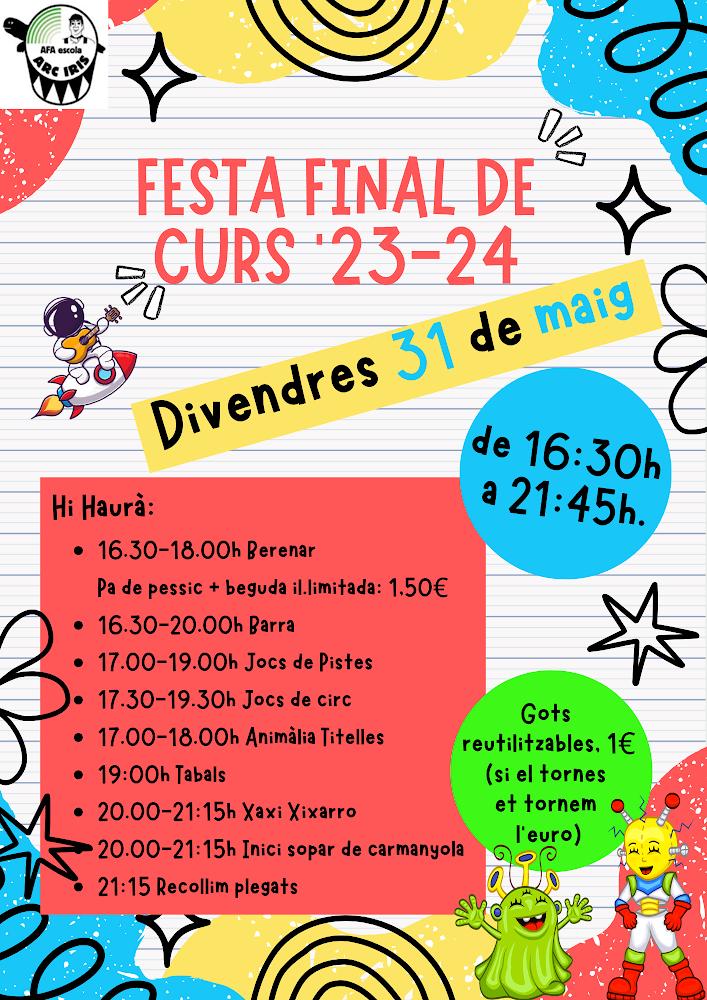Va ser una tarda molt bonica, on totes les famílies de l’Arc Iris van celebrar aquest curs ’23-24, que està a punt d’acabar.