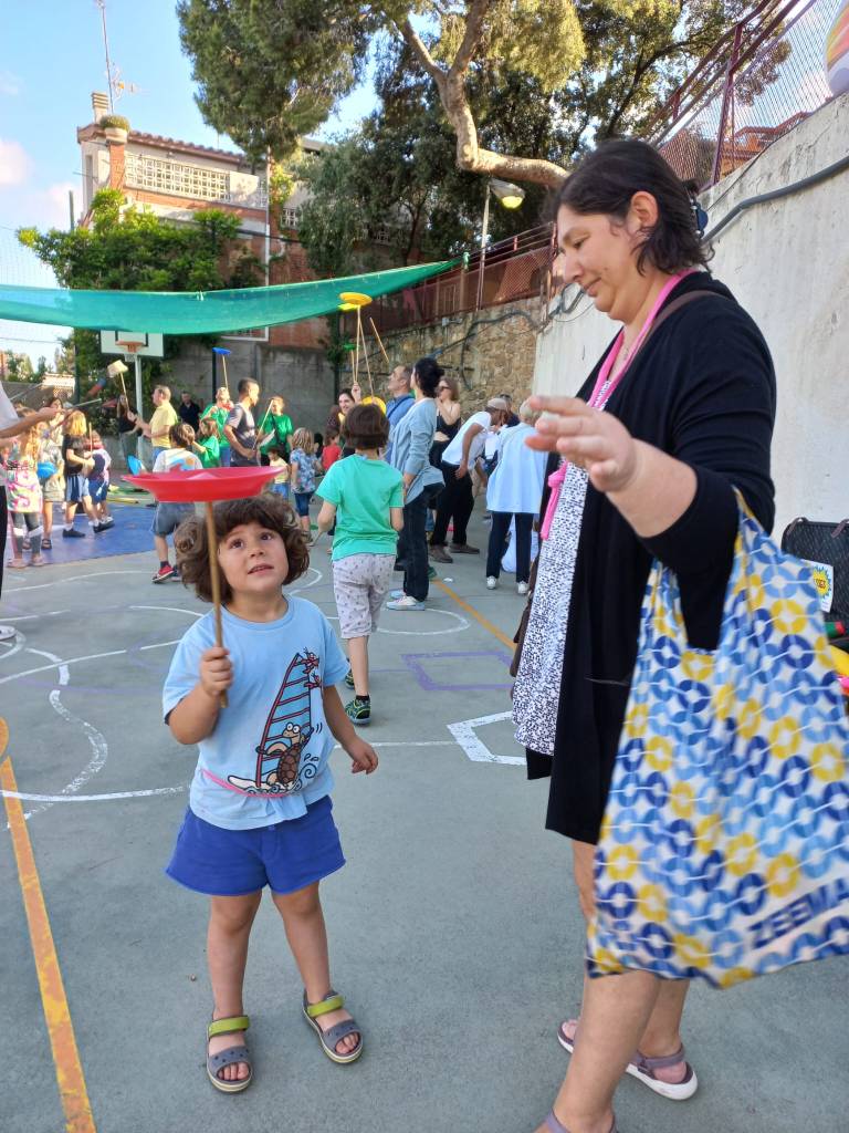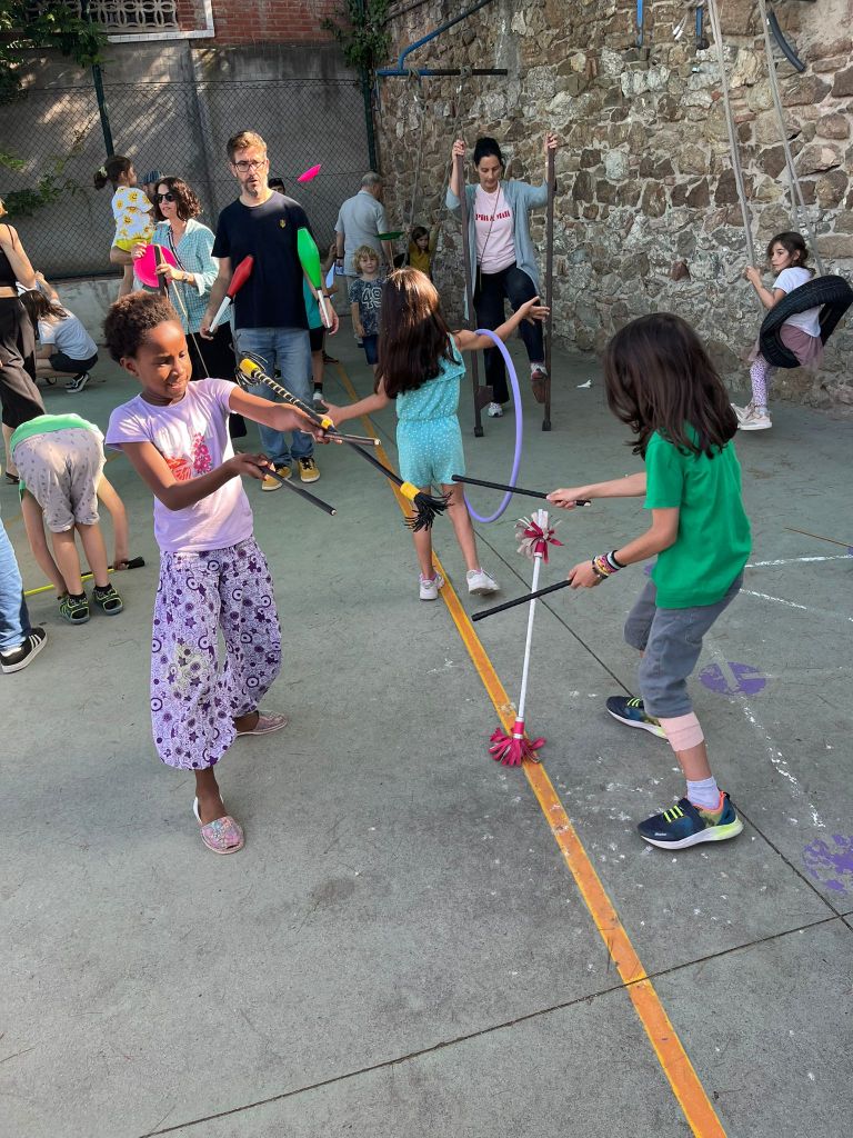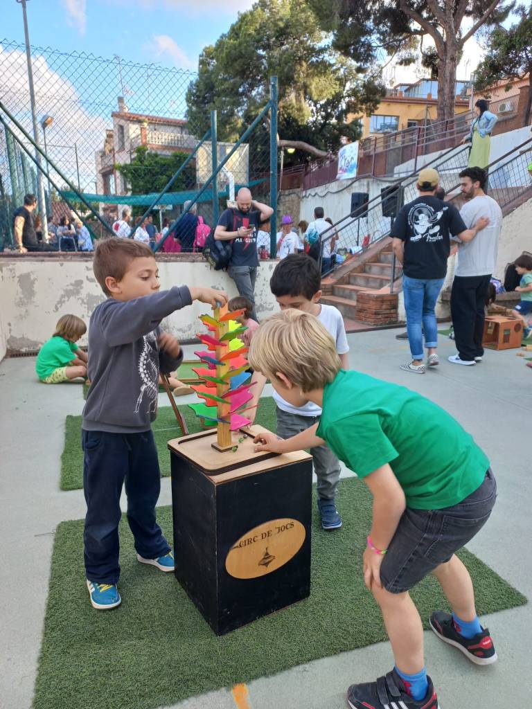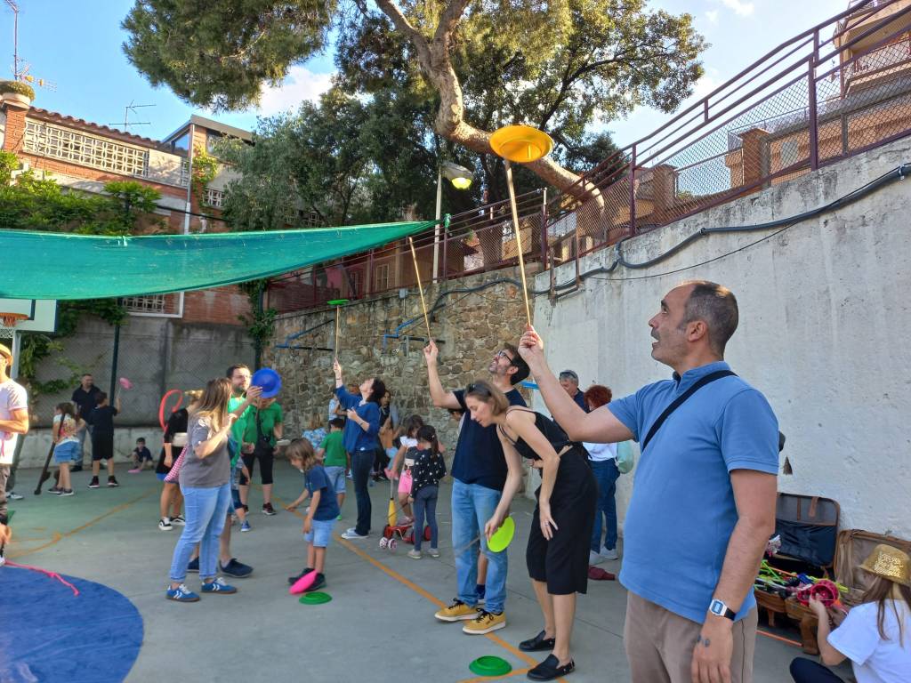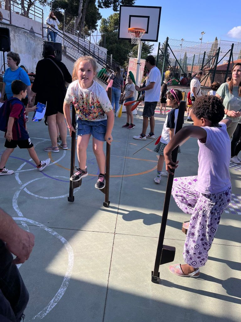Es va continuar la festa amb els Jocs de Circ, instal·lats a les pistes de minibàsquet i mini vòlei, on vam gaudir de moltíssims jocs divertits, com d’equilibris, malabars, amb l’escombra, construccions, amb més tranquil·litat a les catifes…
