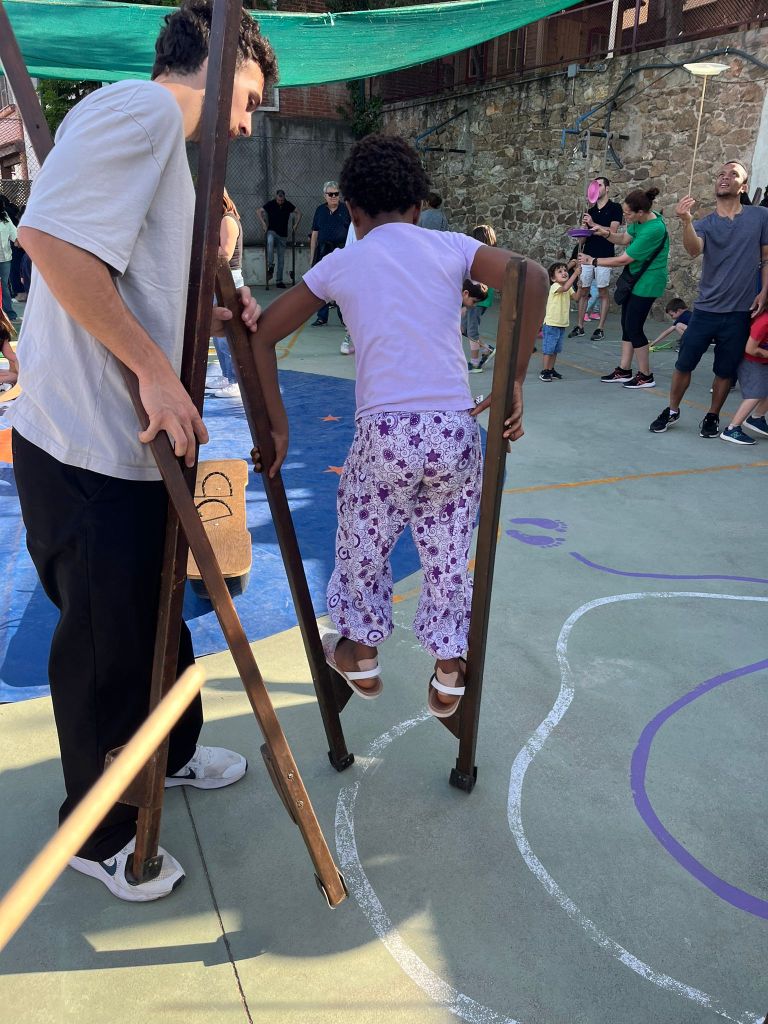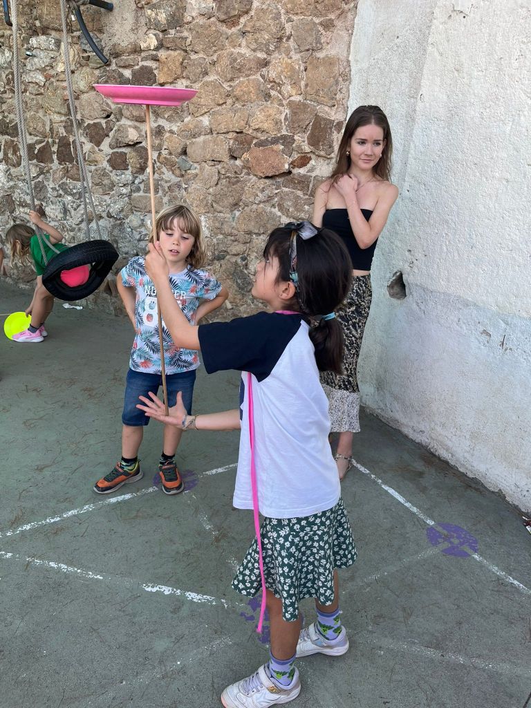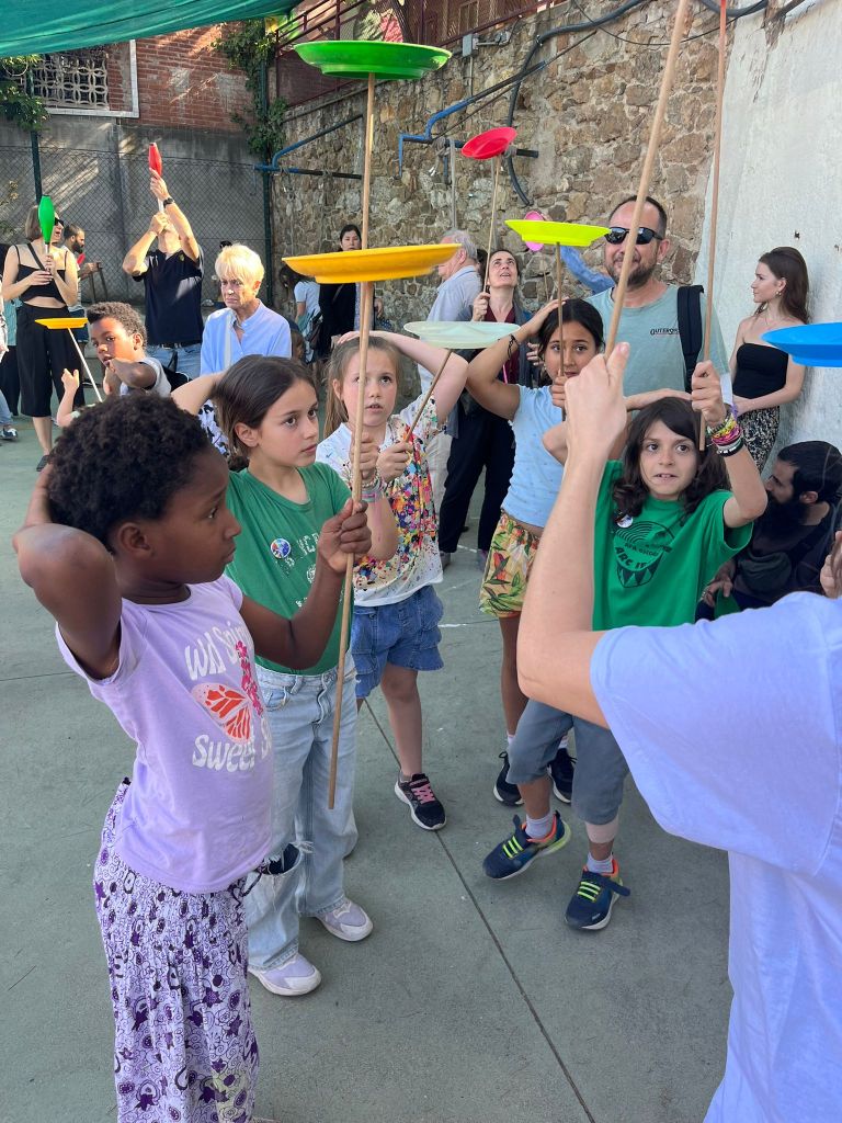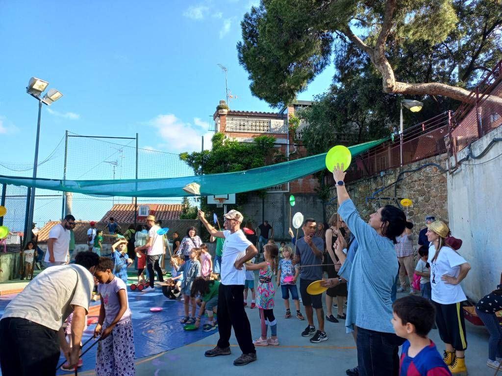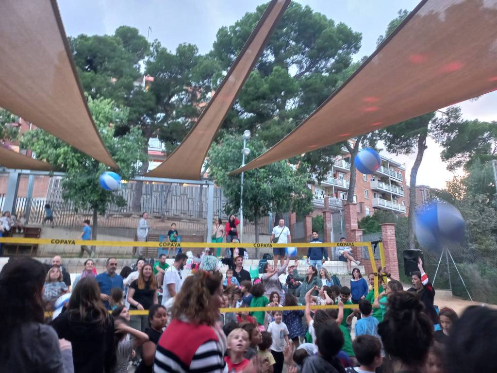 Es va continuar la festa amb els Jocs de Circ, instal·lats a les pistes de minibàsquet i mini vòlei, on vam gaudir de moltíssims jocs divertits, com d’equilibris, malabars, amb l’escombra, construccions, amb més tranquil·litat a les catifes…
