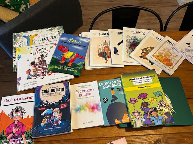 Paral·lelament, les famílies vam compartir una estona a l’espai exterior on van fullejar publicacions i revistes d’autors autistes que parlen en primera persona, alguns dels quals també es dediquen a la investigació, aportant nous punts de vista sobre l’autisme i la neurodiversitat.