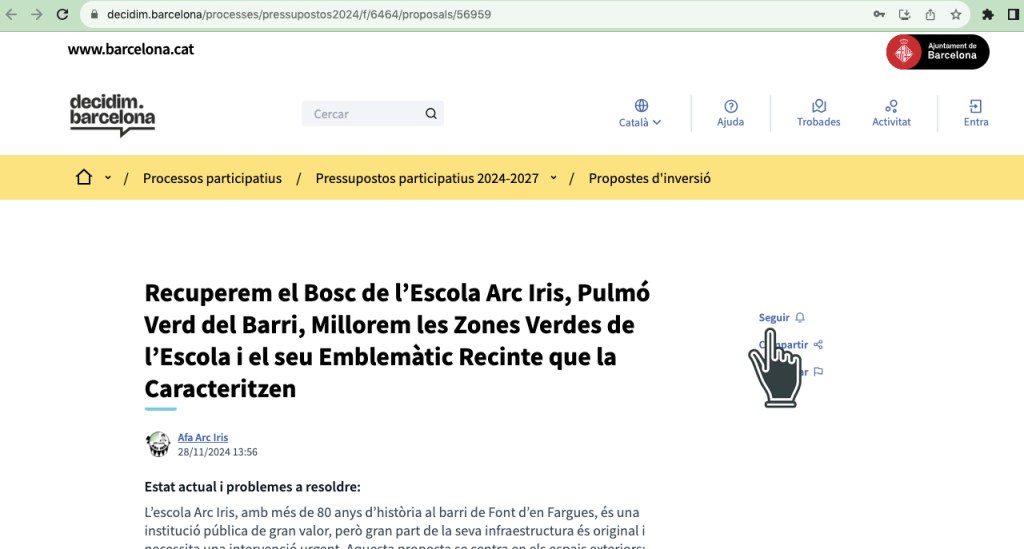 Feu clic a “Seguir” i afegiu un comentari a favor (al final de la pàgina)