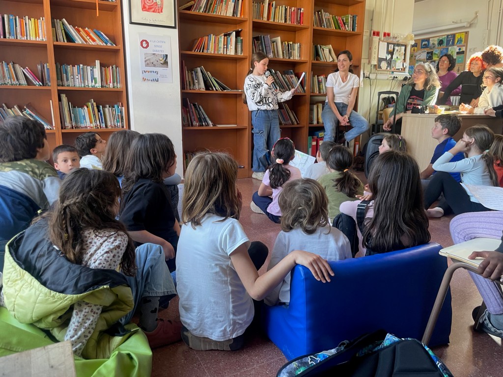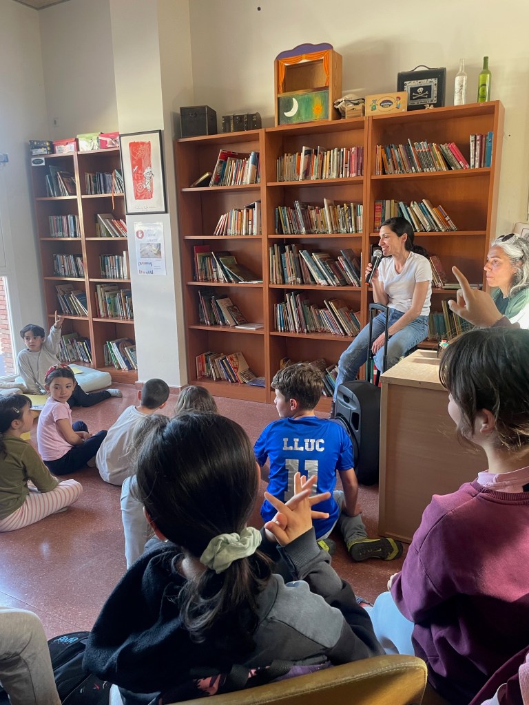 Un micro obert a la Biblioteca per llegir en veu alta els treballs dels infants, el que va ser un gran èxit!
