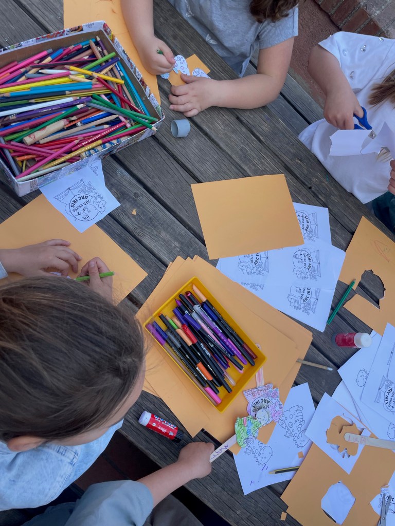 Un taller de punts de llibre i pintar davant la Biblioteca.