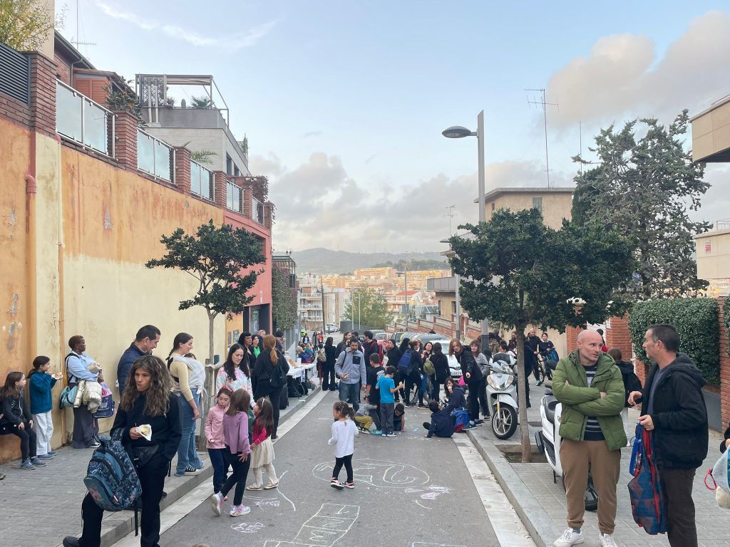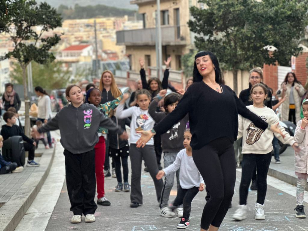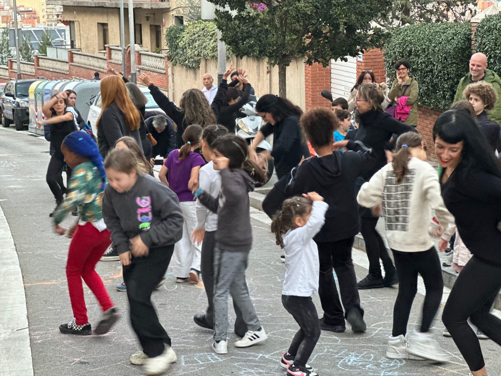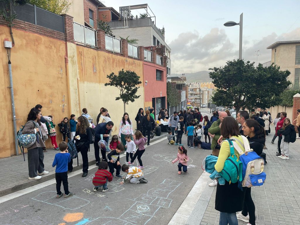 Els més petits també van tenir el seu moment de diversió pintant amb guixos sobre la carretera. Els nens i nenes van deixar el seu toc personal en forma de dibuixos i missatges de pau, fent que el carrer fos més bonic i ple de colors.