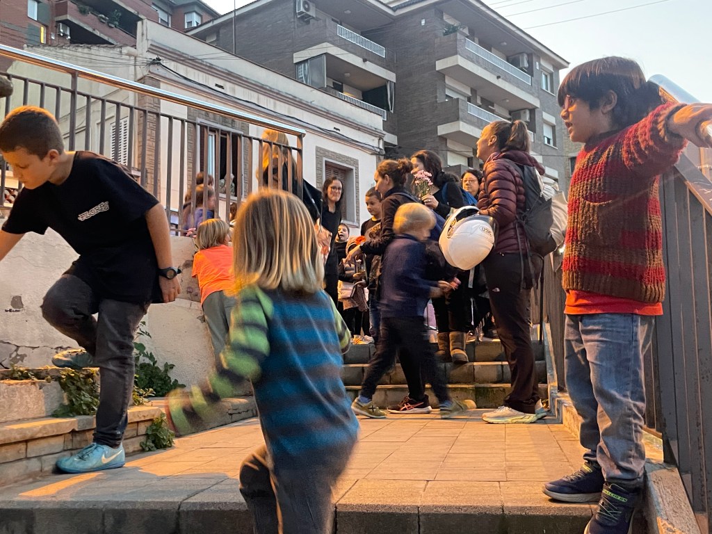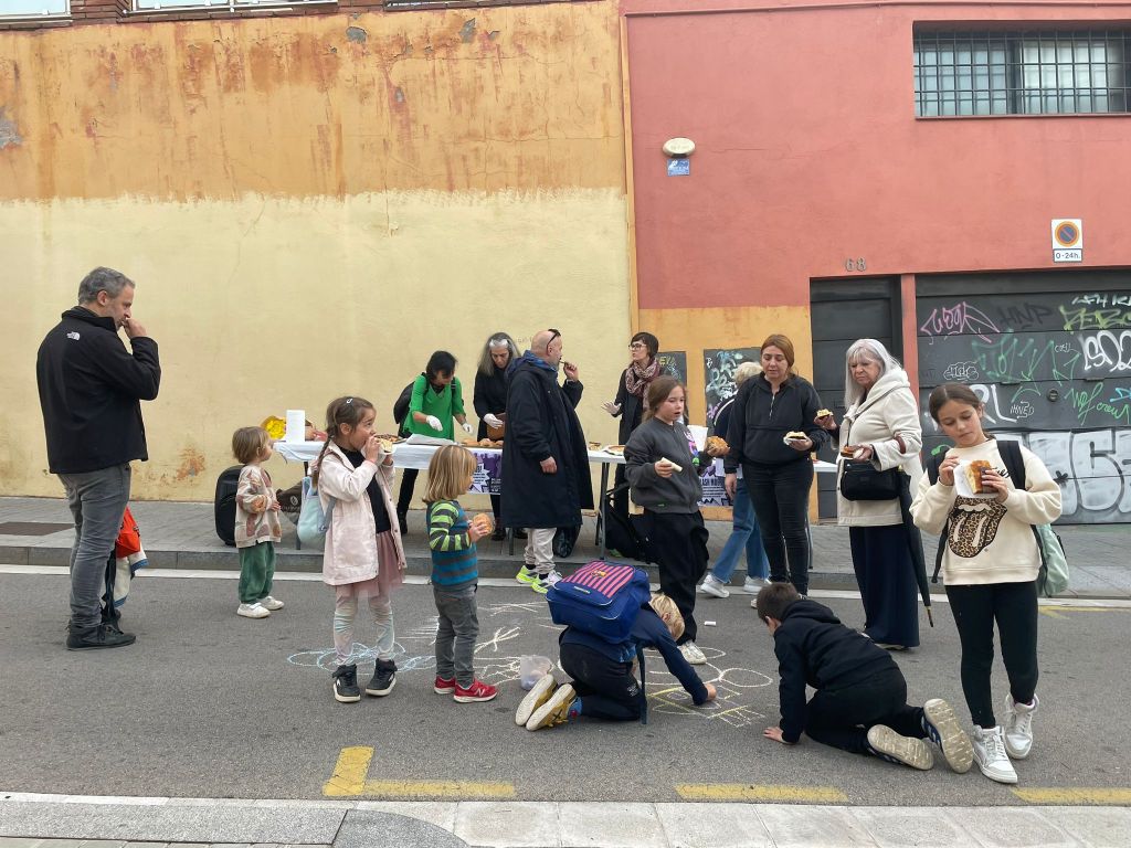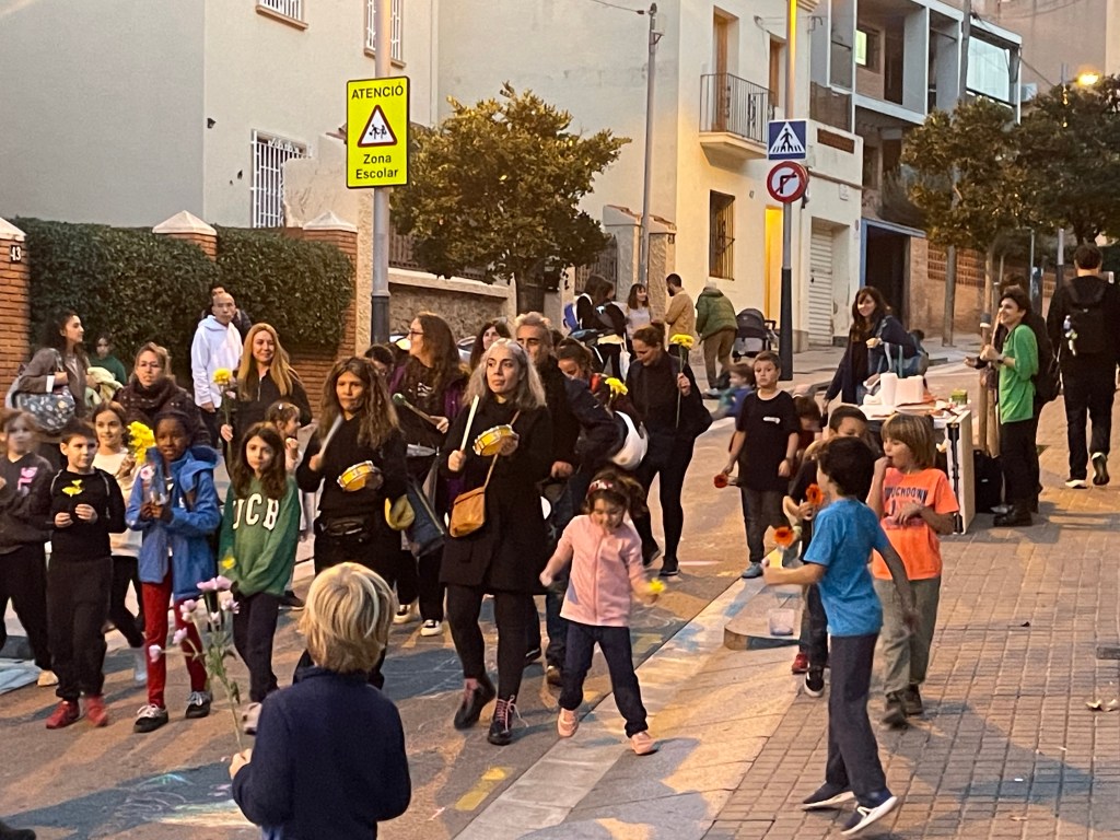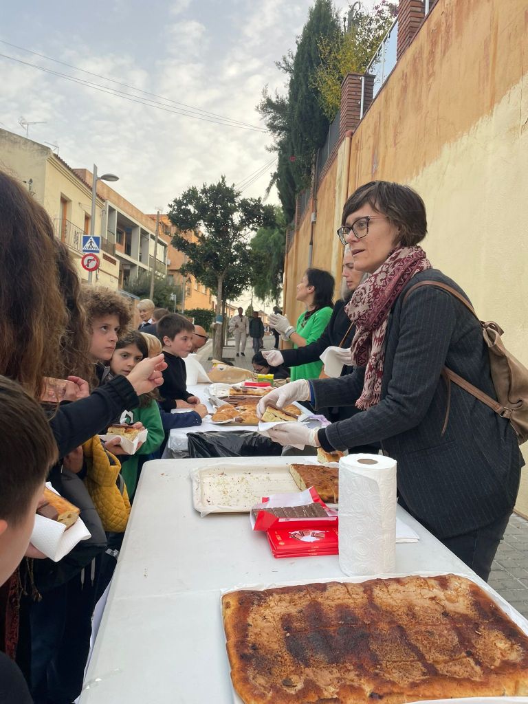 La festa va començar amb un berenar popular de pa amb xocolata i coca. Gràcies a la generositat de 9 natural cuina, la nostra empresa del menjador, que ens va donar les coques i als forns Galette & Pastim i Forn Rocamora, que ens van donar el pà. Es van recollir uns 100 euros, que es donaran a l’Associació Hèlia, una entitat que treballa ajudant les dones víctimes de la violència de gènere.
