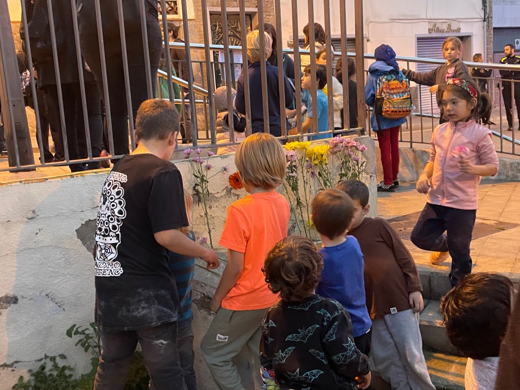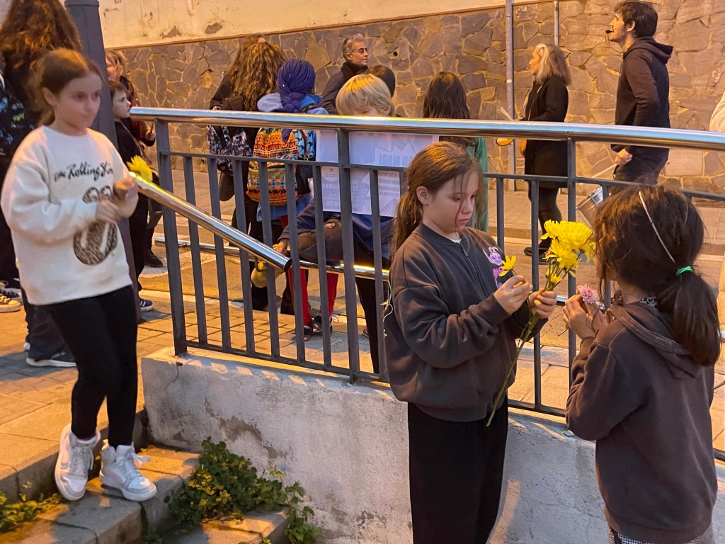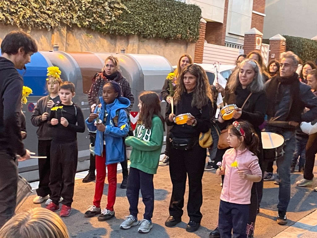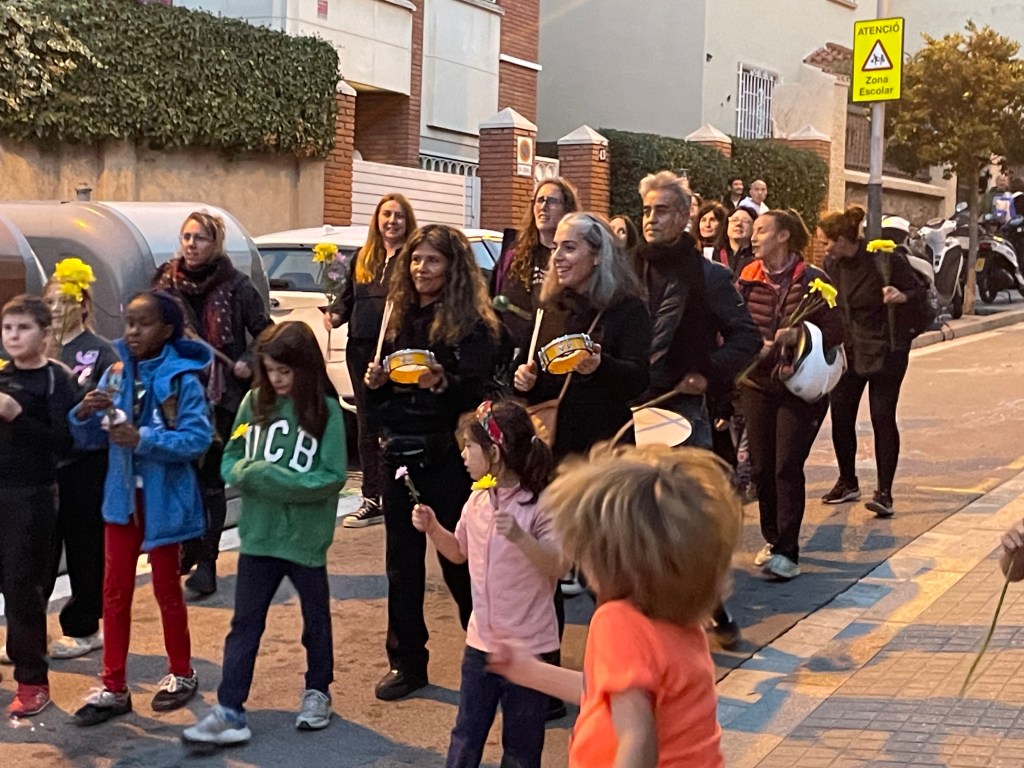 Per acabar, es va fer una petita processó amb la colla tabalera, que va acompanyar el grup amb els seus ritmes. Van caminar fins a les escales que baixen al carrer Dalmau Creixell, on es van dipositar flors en record de totes les dones víctimes de la violència masclista.