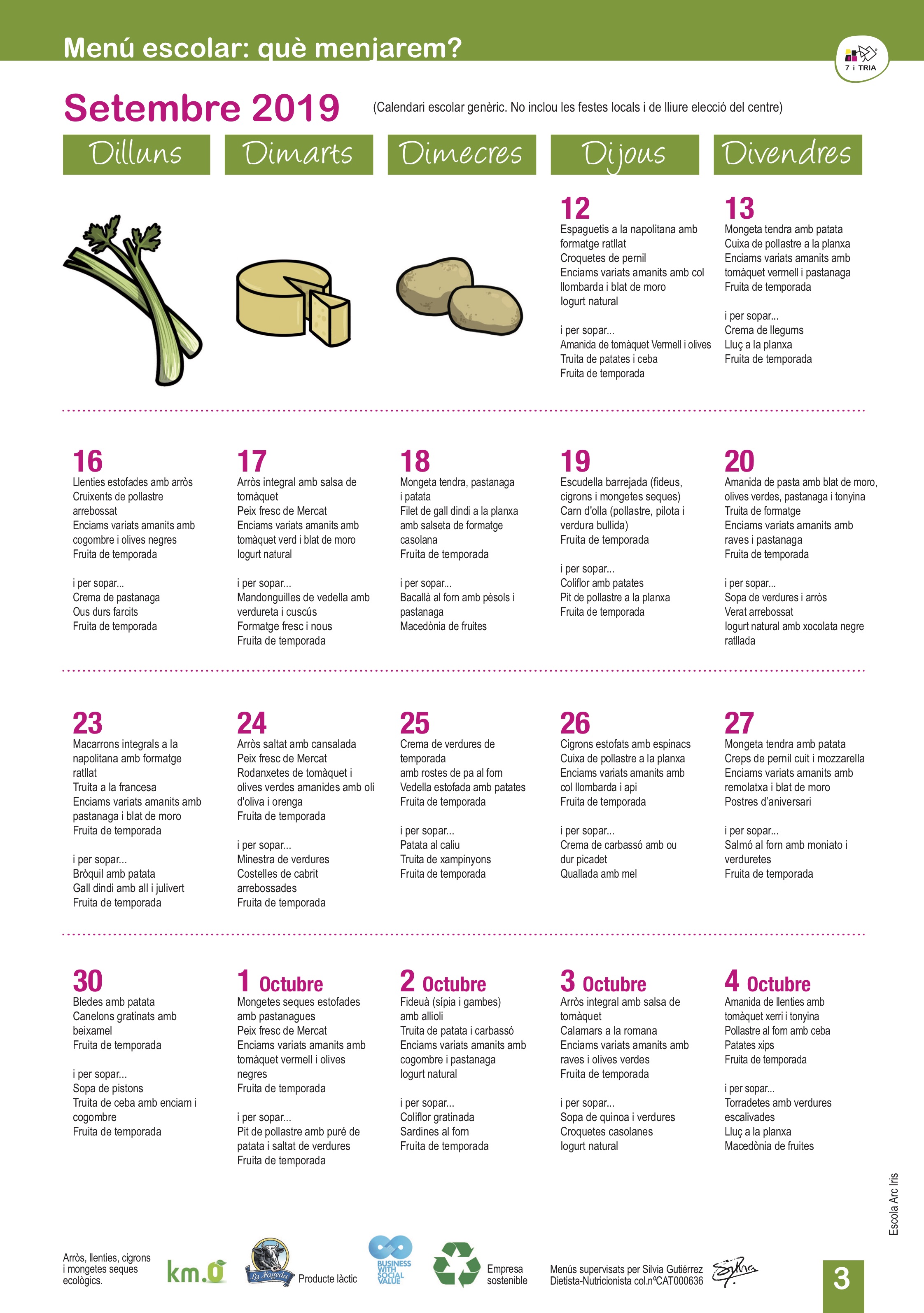 Menú 7 i tria setembre 2019 – Escola Arc Iris