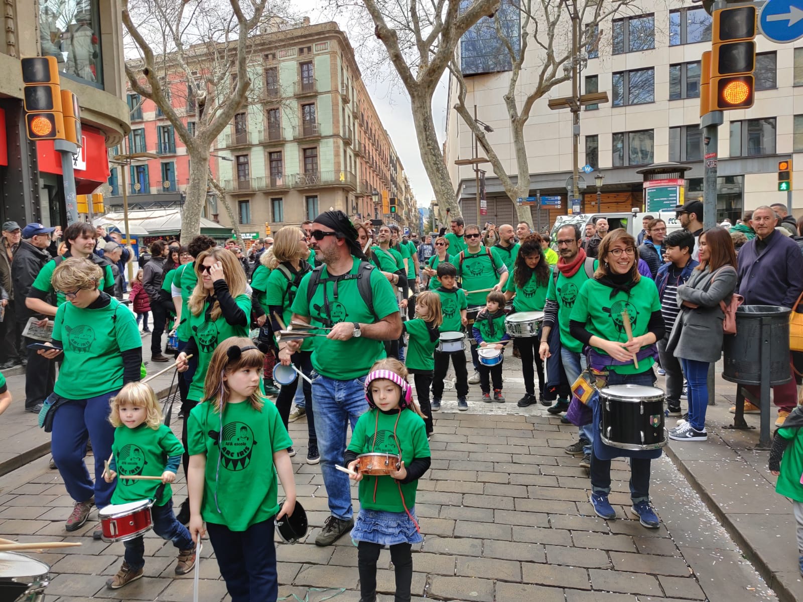 La colla gegantera i tabalera com moltes dones més i homes es van reivindicar el 8M dia internacional de les dones.
