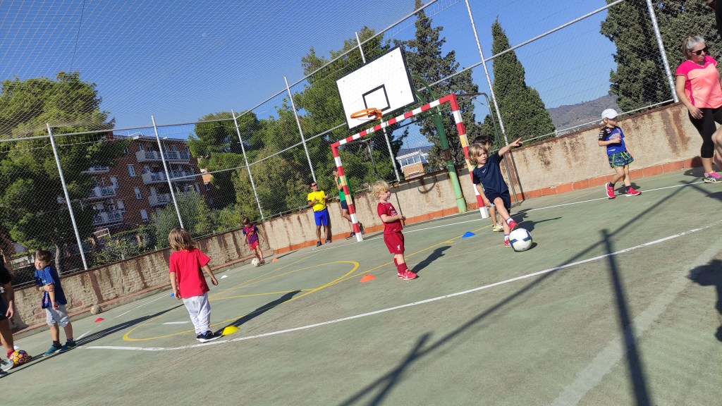 La primera estació era el Pitxi, que es va jugar al poli. Al pati de minibàsquet es van fer el joc de la cadena, el d’estirar cues i les rutlles musicals. I al gimnàs es va jugar a pilota i els llençols, a travessar el riu i també a fer figures d’acroesport!