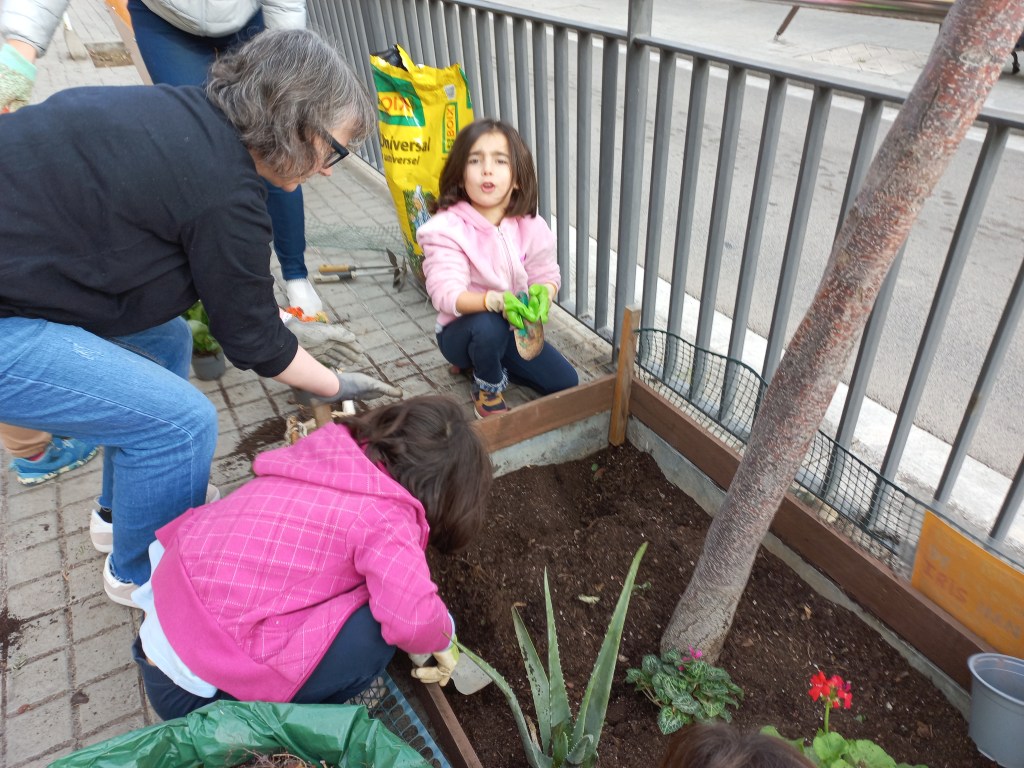Plantació escocells: vam netejar els dos escocells que hi ha davant de l’entrada de l’escola, i vam plantar floretes i plantes. L’Albert va reparar les proteccions de fusta. A veure si entre tots, podem cuidar-los i regar-los de tant en tant.