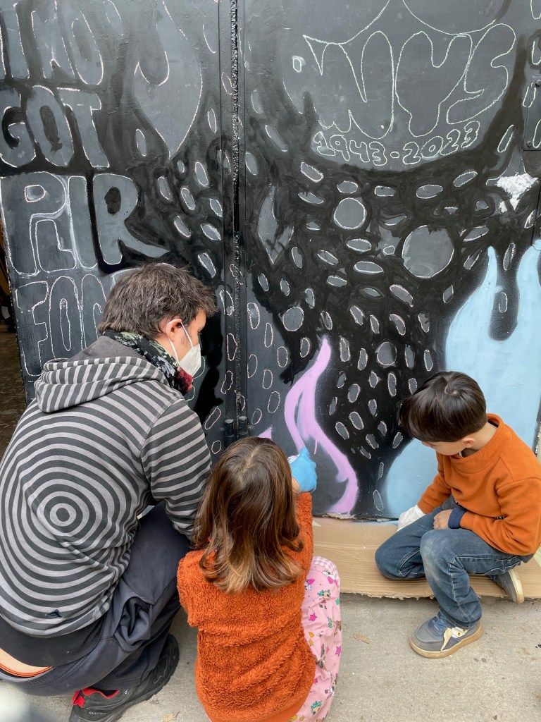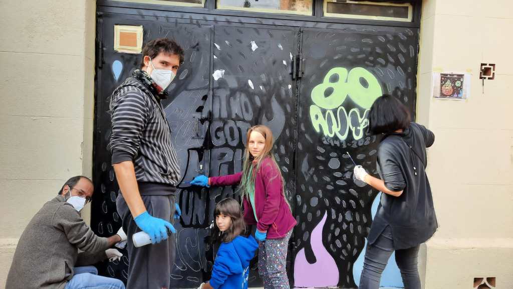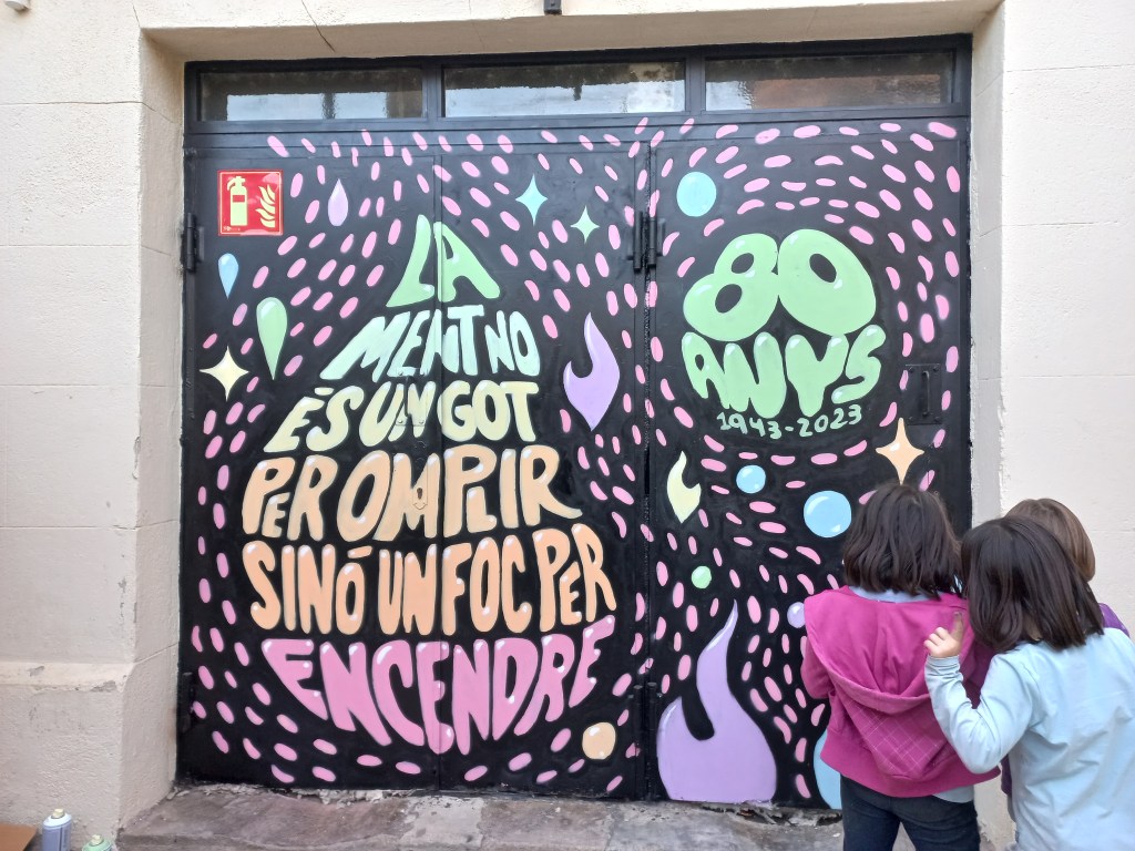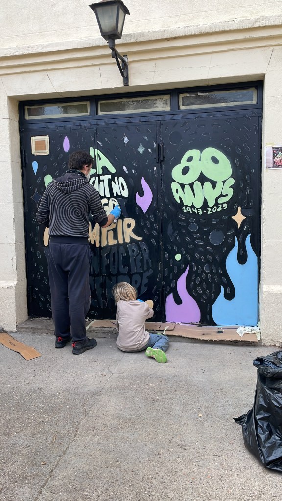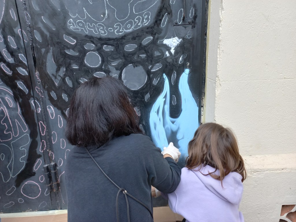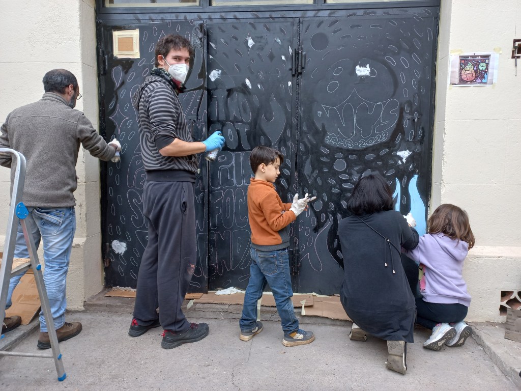 Pintura de la porta de la Carbonera. Es va fer seguint un disseny realitzat per en Bertran i acordat amb l’escola. Va ser un treball de moltes hores, però molt interessant per a tots i va quedar preciós, a què sí? Felicitats a totes les pintores i els pintors😊