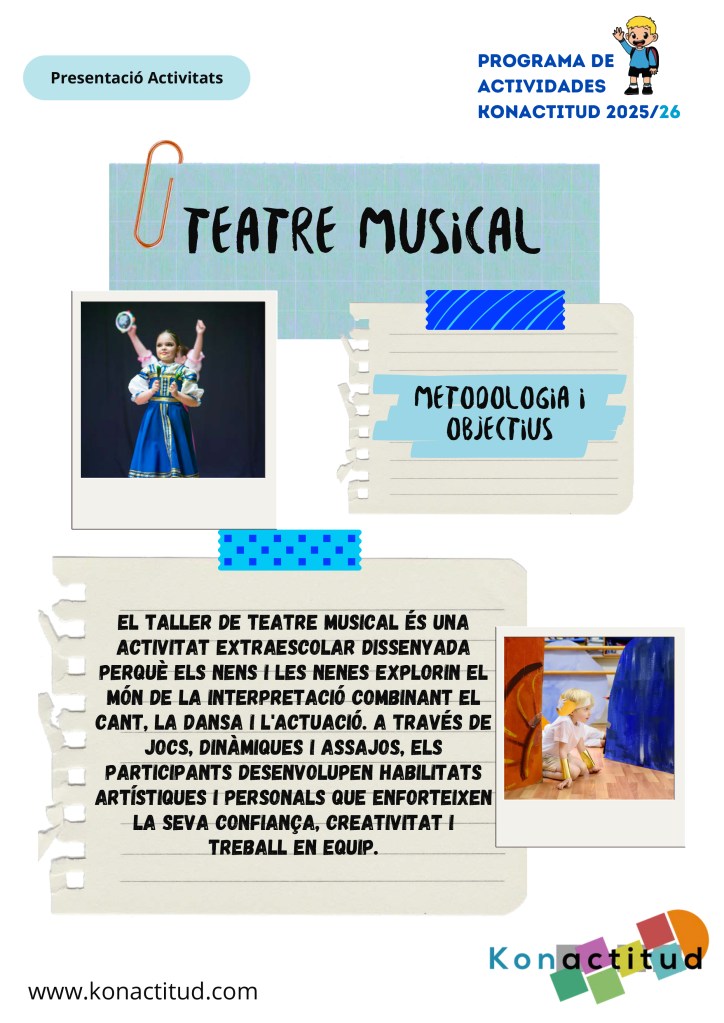 Horaris: i4 – i5, dimarts 16:45 h a 18:00 h. Preu de l’activitat: 21 €/mes Inscripció: aquí Extraescolars_KonactitudBaixa Compártelo: Feu clic per compartir a X (S'obre en una nova finestra) X Feu clic per compartir al Facebook (S'obre en una nova finestra) Facebook M'agrada S'està carregant...